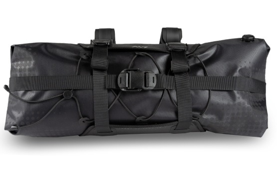 The new ACID Handlebar Bag PACK PRO 15 – developed in cooperation with experienced bikepackers – is the larger version of the PACK PRO 9, but fits in the same harness. The two-piece system comprises a harness and a waterproof dry bag with welded construction for maximum functionality. Using the flexible MOLLE system, the harness attaches safely to the handlebar. While the sturdy dry bag with welded construction simply slots into the harness and is secured in place with two quick fasteners. A horizontal compression strap ensures a rock-solid hold. Another feature: an integrated air valve that allows the contents to compress down even further. Reflective details on both parts improve visibility on the roads in low-light conditions. There's also an attachment for mounting a front light.