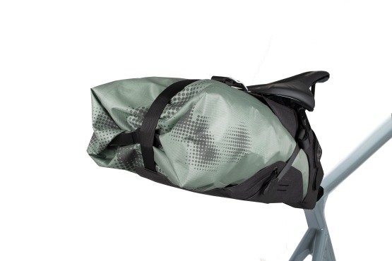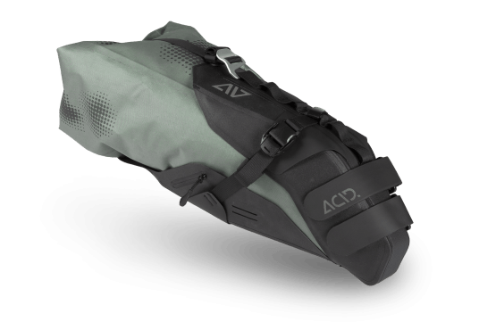 From micro adventures to multi-day or -week bikepacking tours, the ACID PACK PRO 15 was developed in cooperation with experienced bikepackers. The two-piece system includes a harness and a waterproof dry bag with welded construction for maximum functionality. Using the flexible MOLLE system, the harness securely attaches to the saddle rails and seatpost where, once fitted, it can stay on for as long as you need. The rugged dry bag simply slots into the harness and fixes in place, and is just as quick to remove when shopping for supplies or when you've arrived at your destination for the evening. Another feature: an integrated air valve that allows the contents to compress down even further. Reflective details on both parts improve visibility on the roads in low-light conditions. There's also an attachment for mounting a tail light.