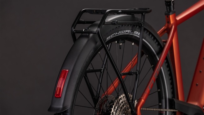 The Nuride Hybrid Pro 600 combines the go-anywhere ability of a mountain bike with the ease of use of a city bike and the adaptability of a tourer. With its smooth and punchy Bosch CX motor and high-capacity 600Wh battery, it has the power to help make light work of any journey. Shimano's legendary XT 1x12 gears put the right ratio literally at your fingertips, while powerful Shimano hydraulic disc brakes ensure you're always in control. Wide, grippy Schwalbe tyres and a comfortable Suntour air suspension fork take the sting out of rougher roads. And the equipment package – including mudguards, lights, Semi Integrated Carrier 2.0 and kickstand – means you're all set for work or play.