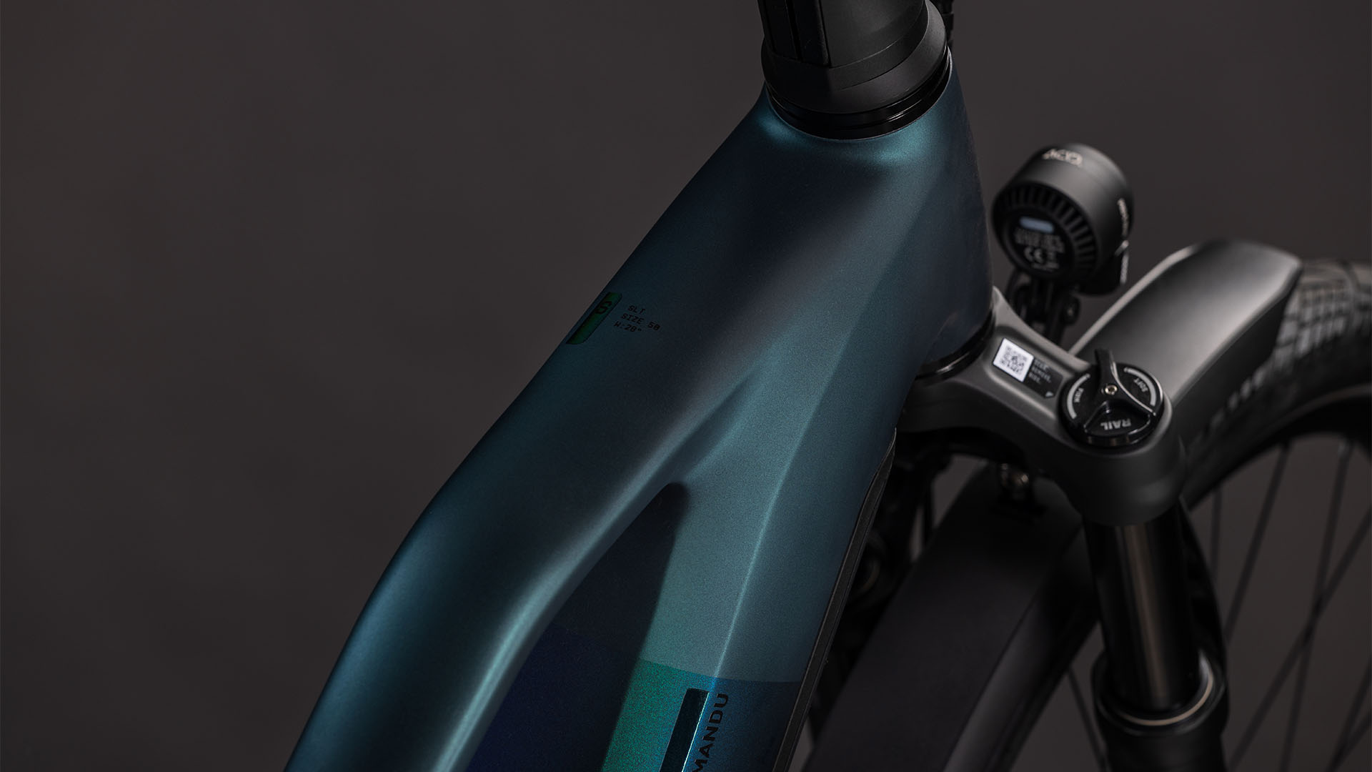 Where would you like to go? Because wherever it is, the CUBE Kathmandu Hybrid SLT will get you there in comfort and style. Shimano's electronic XT Di2 12-speed gears deliver the combined power of your pedalling and a Bosch CX motor to the road via a Newmen Beskar 30 wheelset and Schwalbe Marathon Efficiency Evo tyres. The 800Wh PowerTube battery gives you the range you need, town or country, and there's a Bosch Connect Module for GPS tracking. Magura Gustav Pro hydraulic disc brakes – with ABS technology – have the power to haul you to a halt in any weather. We fitted a Fox 34 AWL Float suspension fork, an adjustable stem and a parallelogram suspension seatpost to help make any journey more comfortable. And, with its full complement of accessories and sturdy, adaptable Integrated Carrier 3.0, this is a bike that's ready for just about anything.