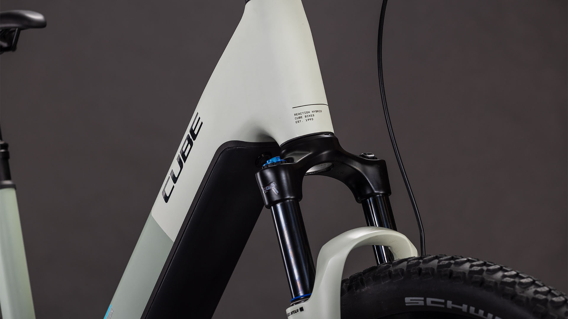 The Reaction Hybrid Pro combines mountain bike versatility with Bosch-powered ease of use and clever CUBE design. Tackle any route, off-road or on, thanks to an 800Wh battery and smooth, powerful Bosch CX drive. Combined with Shimano's easy-to-use XT 12-speed gears, it's all you need to comfortably ride any hill. For coming back down the other side, we fitted powerful Shimano 4-piston hydraulic disc brakes and grippy Schwalbe 2.6in tyres. There's also an air-sprung fork with 120mm of travel (100mm for small frame sizes and for all Easy Entry models), and a remote dropper seatpost for extra comfort and control on rougher trails. It's got it all – the rest is up to you.