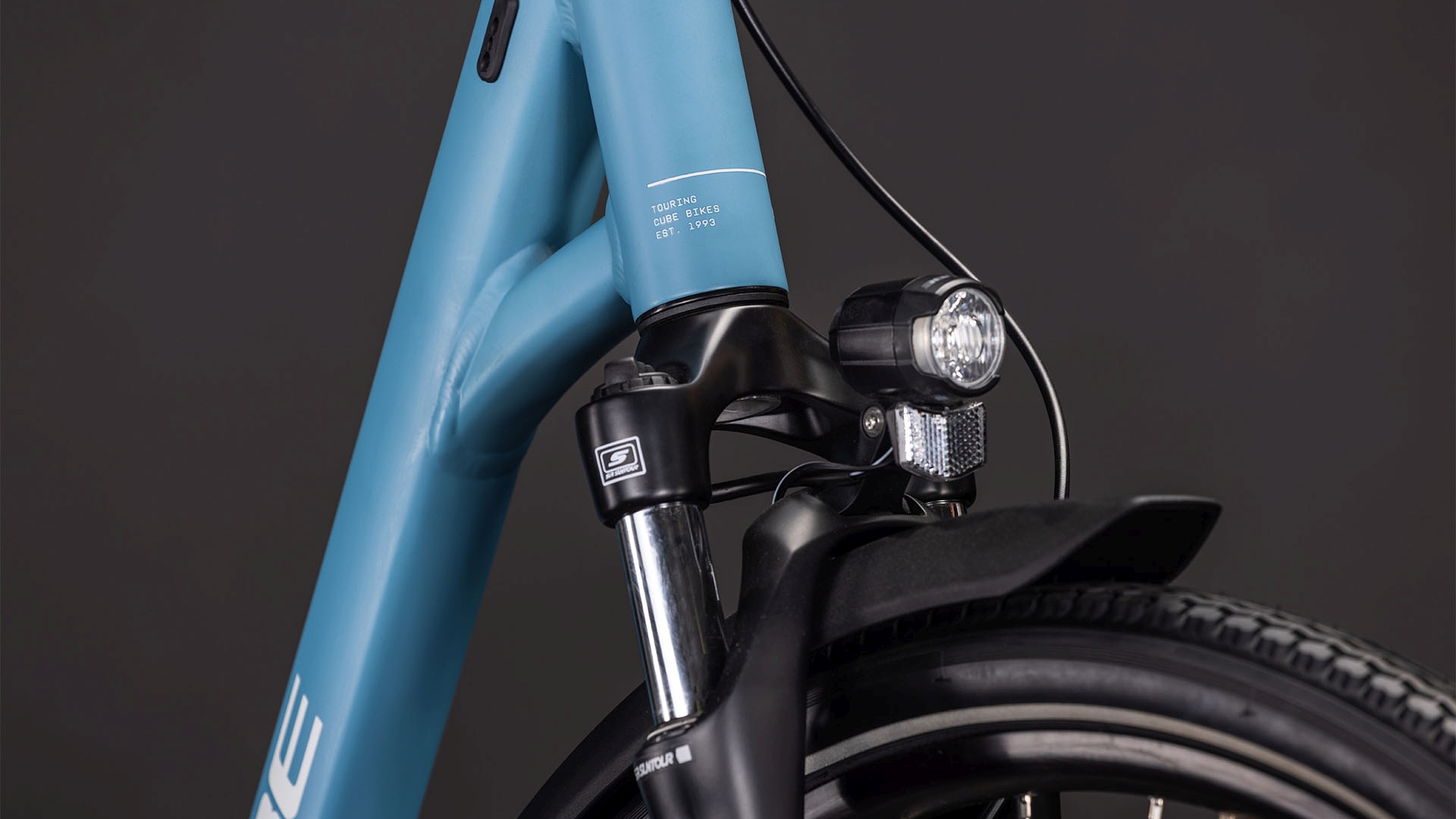 The Touring ONE's full equipment package and comfortable design is just what you need to broaden your cycling horizons. Easy-to-use 1x8 Shimano Essa gears put a wide range of ratios – enough to make light work of any route – literally at your fingertips. Powerful Shimano hydraulic disc brakes provide assured slowing and stopping regardless of weather conditions. A suspension fork and 47mm-wide tyres help smooth out rough roads. And full-length mudguards, our sturdy and exceptionally neat Semi Integrated Carrier 2.0, built-in dynamo lights and a handy flat mount kickstand mean you've everything you need for Kurztext trips across town and longer forays into the countryside.