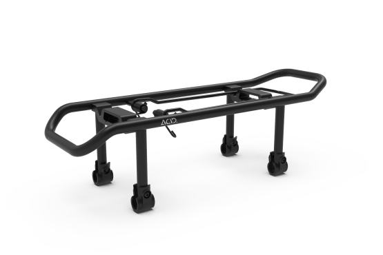 Even more loading volume for your luggage carrier. With this attachment, you can retrofit your ACID SIC RAIL 28" carrier with RILink and spring clamp. The spring clamp allows you to spontaneously secure small luggage, while the RILink allows you to optimally attach ACID trunk bags. You are also able to hang pannier bags higher than before.