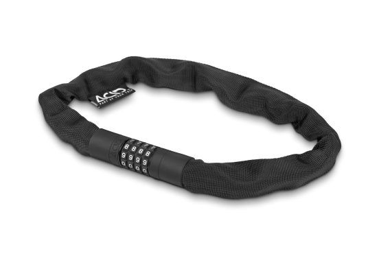 The extra-secure chain lock in our CORVID C range is virtually noiseless yet incredibly sturdy with a tear-resistant, hard-wearing textile sleeve. A rubberised surface prevents corrosion and protects your frame against scratches. GRIP+ technology on the lock body and combination wheels ensures maximum grip. Personalisable combination.