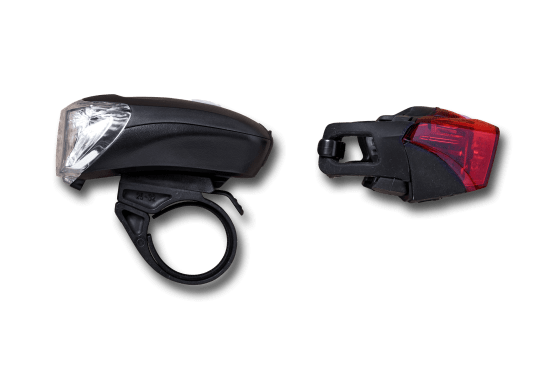 Top safety meets simplicity! Our German road traffic regulation (StVZO) approved front light can switch between 35 and 15 lux and is powered by an integrated lithium-polymer battery that can be recharged conveniently via USB. A splashproof casing makes it ideal for use in damp weather and assembly is a cinch. The rear light also complies with German road traffic regulations and is attached completely tool-free using an adjustable bracket for the perfect angle. Also splashproof.