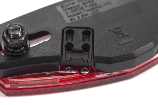 The RFR Rack Rear Light Dynamo TOUR's LED tail light with integrated reflector ups the game for safety on the city streets. It complies with German road traffic regulations (StVZO) and is compatible with bikes with hub dynamos. "Standlight" function (stays on when you stop) via built-in capacitor, attaches to 50 or 80 mm spaced mounts.